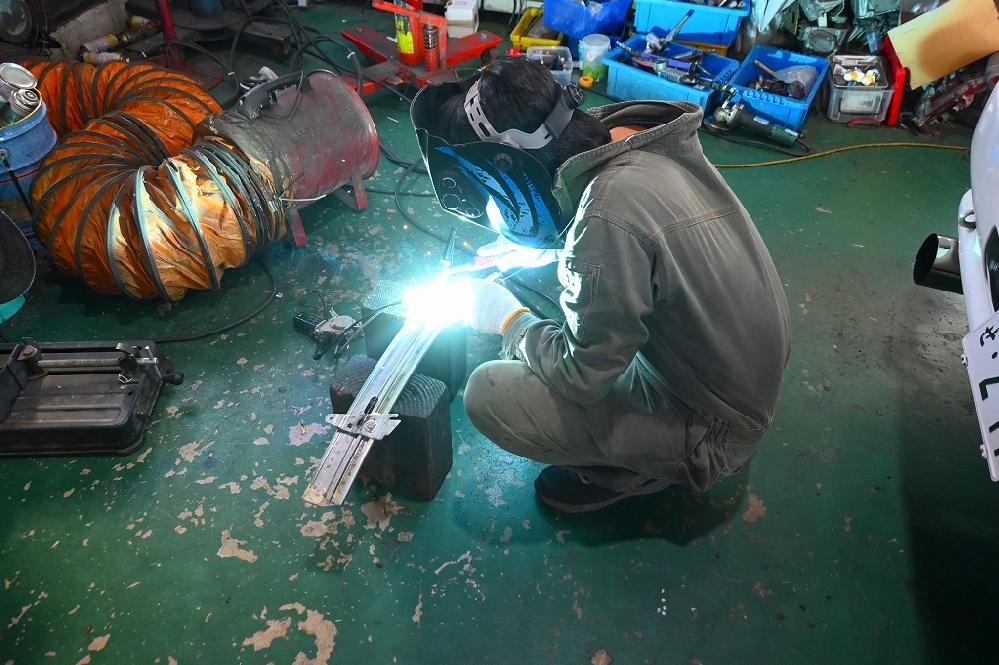 工場長が、プラスチック部品の変わりのパーツを溶接で固定しました。