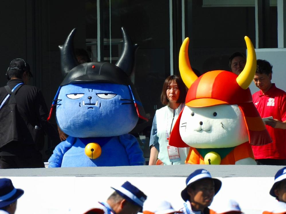 今日の国スポ閉会式で、ひこにゃんとわるにゃんこ将軍が来て下さいました(*^-^*)