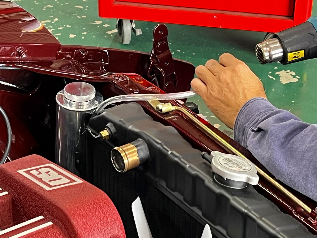 工場長が拘り製作を行ったラジエターのリザーブタンクを装着しました。 工場長が、見た目も大切にリザーブタンクの加工と取付を行いました。 綺麗です(*^-^*) オーナー様、毎日作業が順調に進んでいます(*^-^*) 楽しみに見ていて下さいね。
