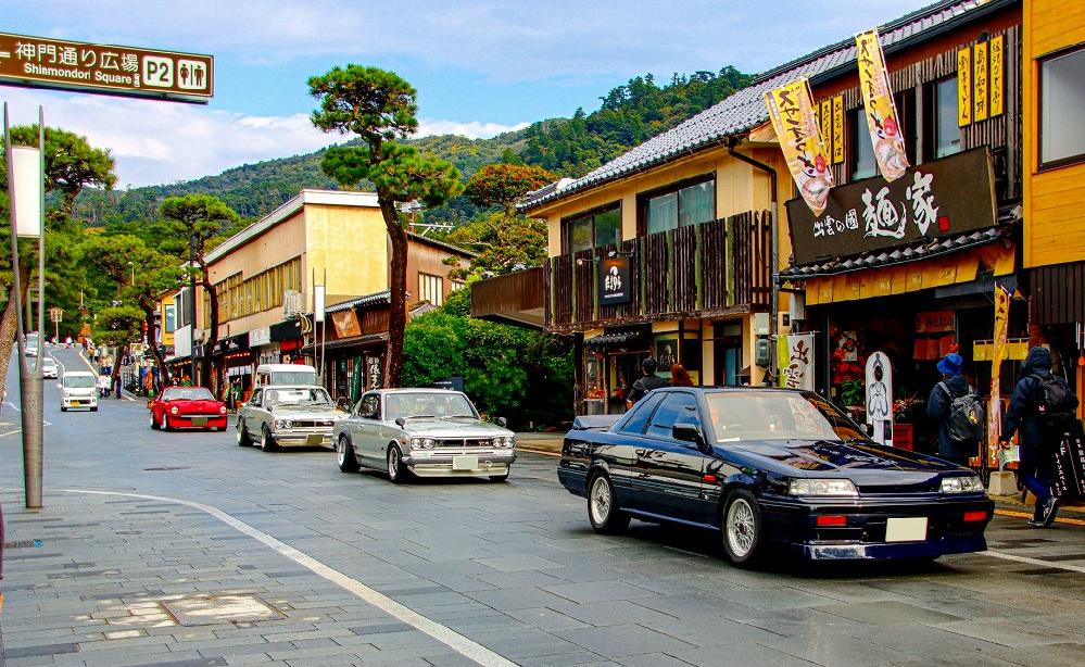 出雲ツーリングで出雲大社通りを走っている写真です。
