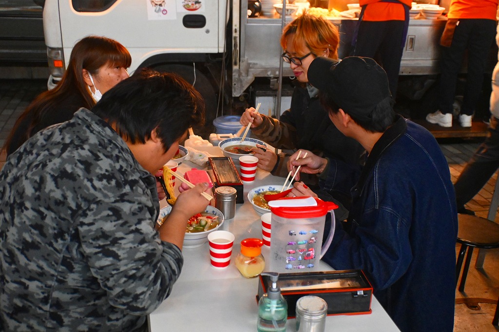 若者たちは、食欲も旺盛です(*^-^*) ツーリングと屋台ラーメンは、最高の組み合わせですね(*^-^*) この写真のラーメンが、池田屋ごんちゃんのラーメンです(*^-^*) 僕の大盛りです(*^-^*) 最高に美味しかったです(*^-^*) これより、二手に分かれて屋台ラーメンのはしごを行いました(*^-^*) 僕は、屋台ラーメンのおかやに愛知コペン君のオーナー様と一緒に向かいました(*^-^*) 赤ビート君とkaorinは、屋台ラーメンの味噌ラーメン陽に向かいました(*^-^*)