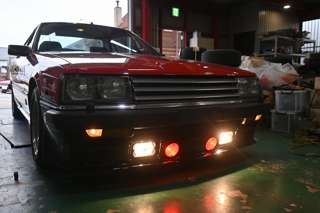 本日も引き続き、配線制作を行いました(*^-^*) 配線は、純正のハーネスと同じ位置に固定しています(*^-^*) オーナー様、当時の劇車と同じマーシャルフォグ・パトライトが点灯しました(*^-^*) この子は、後期のウインカーが付いています(^_^;) 年式から見ると前期ですがパーツは、後期ですね(^▽^;)