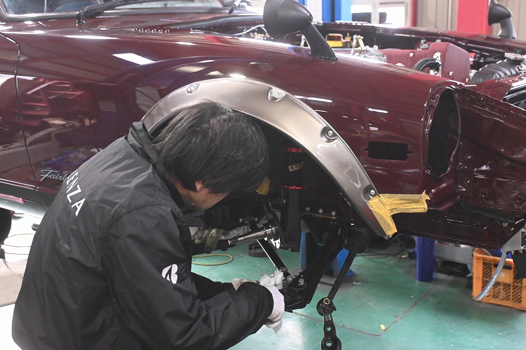 本日より、ブレーキキャリパーの組付け作業に入りました(*^-^*) このブレーキローターも特注です(*^-^*) ワタナベホイールのゴッティーに合わせてローターも加工されています。全てが特注品です。 キャリパーは、ボディ色とビルズ特注の車庫調色に合わせて、オーナー様に色を決めて頂きました(*^-^*)綺麗な赤色ですね(*^-^*) TC24エンジンのヘッドカバーもガレージ石坂と同じ赤色です(*^-^*) 組付けを行う前に全てのブーツを交換して行きます(*^-^*)
