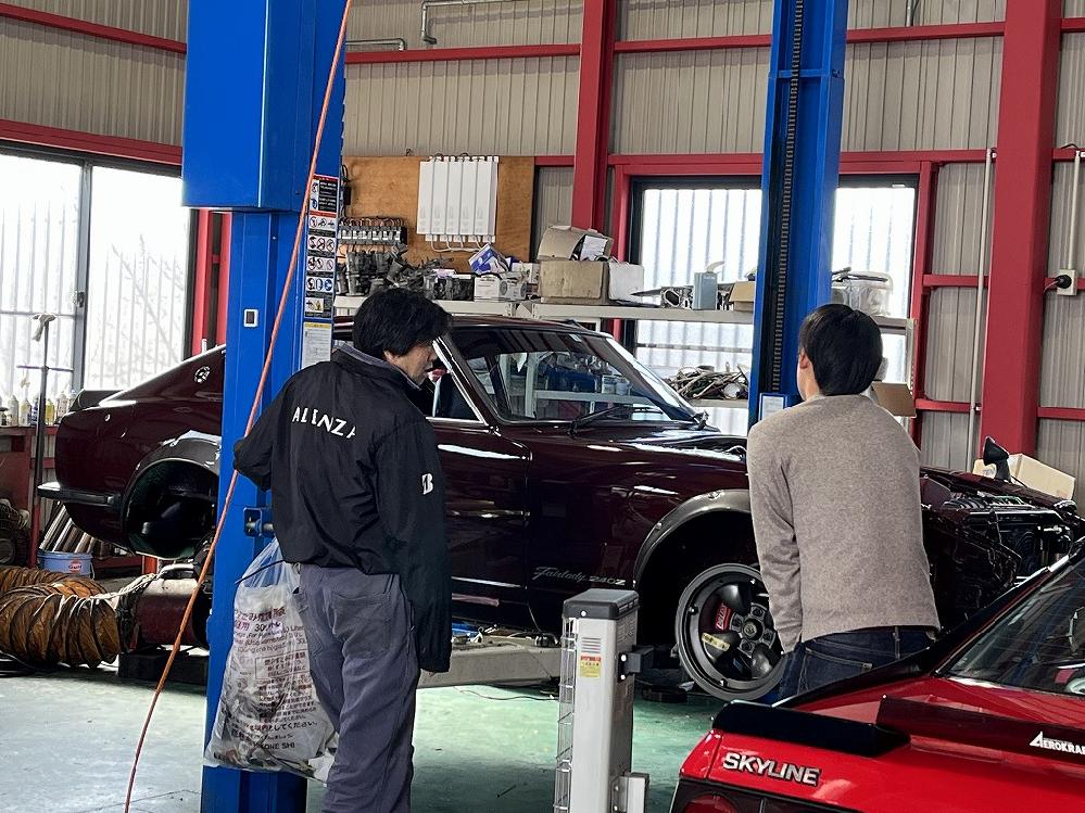 滋賀S30Z君のオーナー様が、通勤車のジムニー君でご来店下さいました(*^-^*) 今日は、愛知240ZG君を見に来て下さいました(*^-^*) 同じS30Z君ですね(*^-^*) これからも安全運転で楽しんで下さいね(*^-^*) 滋賀DR30君のオーナー様が、仲間入りしたDR30君を見に来て下さいました(*^-^*) 旭川DR30君が滋賀県に戻って来られました(*^-^*) 今は、滋賀DR30君に戻られました(*^-^*)