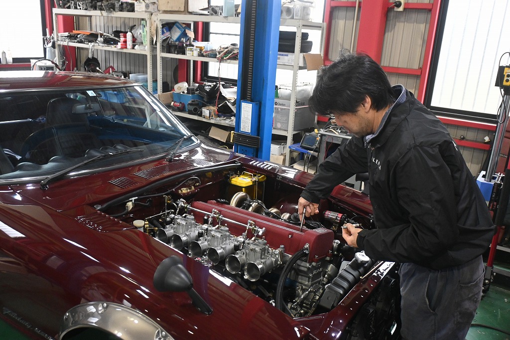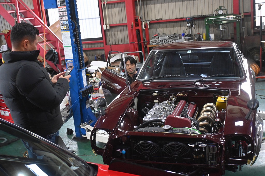 愛知240ZG君のオーナー様がお車を見に来て下さいました(*^-^*) 工場長が、エンジン音を聞いて頂ける様に準備を行いました。 オーナー様の前でTC24エンジンに火が入りました(*^-^*) 凄いレスポンスですね(*^-^*) オーナー様の最高の笑顔を見させて頂きました(*^-^*) 一番嬉しい瞬間です(*^-^*) オーナー様に初めてアクセルを踏んで頂きました(*^-^*) アクセルの軽さとレスポンスを体感して頂きました(^-^) オーナー様(*^-^*)これからもっと進化させて行きます。 楽しみですね(*^-^*)