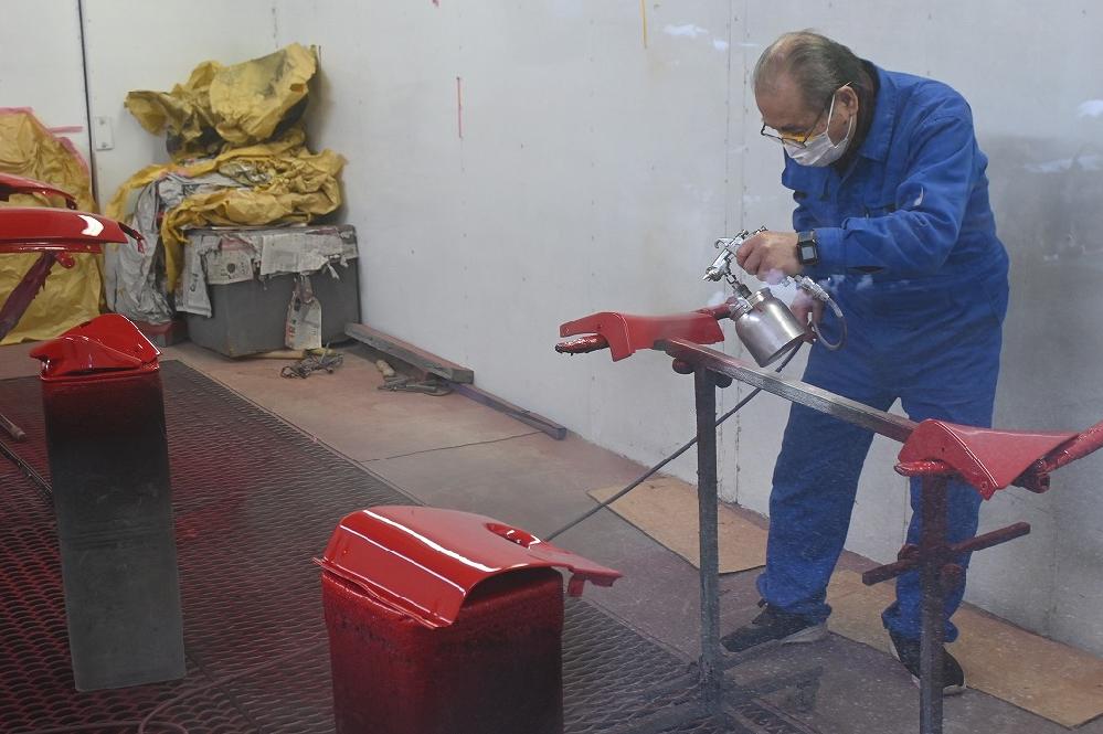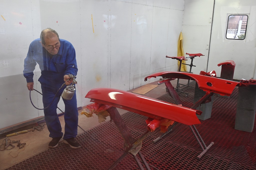 午後から、熟練マイスターが各パーツの塗装作業を行いました(*^-^*) 下地塗装も3層に分けて行います。 細かなパーツも、一点一点、丁寧に塗装を行いました(*^-^*) 軽スポーツ計画は、サラリーマン応援での販売ですが、仕上がりはピットハウスのクオリティーで仕上げます(*^-^*) クリア塗装を行いました(*^-^*) 綺麗な光沢が出ました(*^-^*) 2月に販売出来る様に作業を頑張ります(*^-^*)