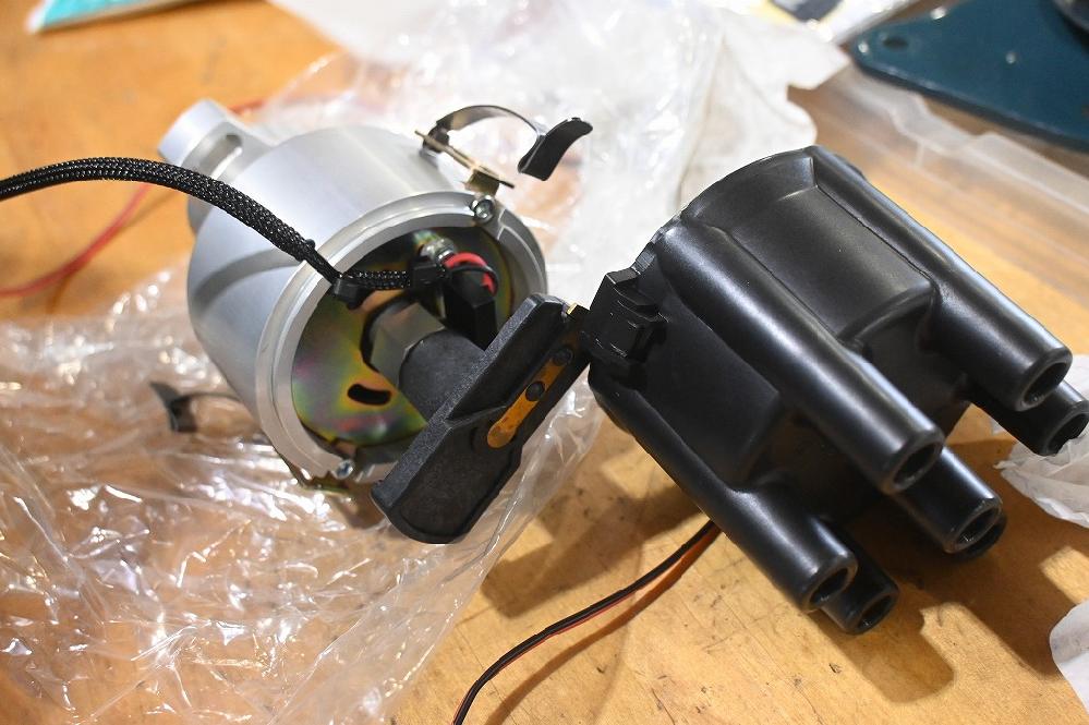 本日は、少し企業秘密を紹介します(*^-^*) OS技研のディストリビューターですが、これを加工して取付ます。 加工に少し企業秘密が隠れています(*^-^*) ディストリビューターの中にコンデンサーを加工して装着します。 本来は外付けの部品ですが、中に入れて固定すると配線も綺麗に隠れます(*^-^*) 新品のマフラーを加工して装着します(*^-^*) このマフラーは、ラーバーソールさんのマフラーです(*^-^*)