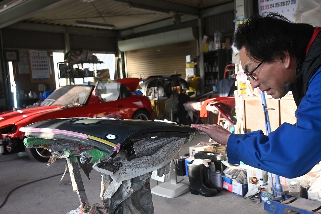 右ドアの塗装をやり直します。ピットハウスは、スタッフ皆の合格評価で作業を進めています。