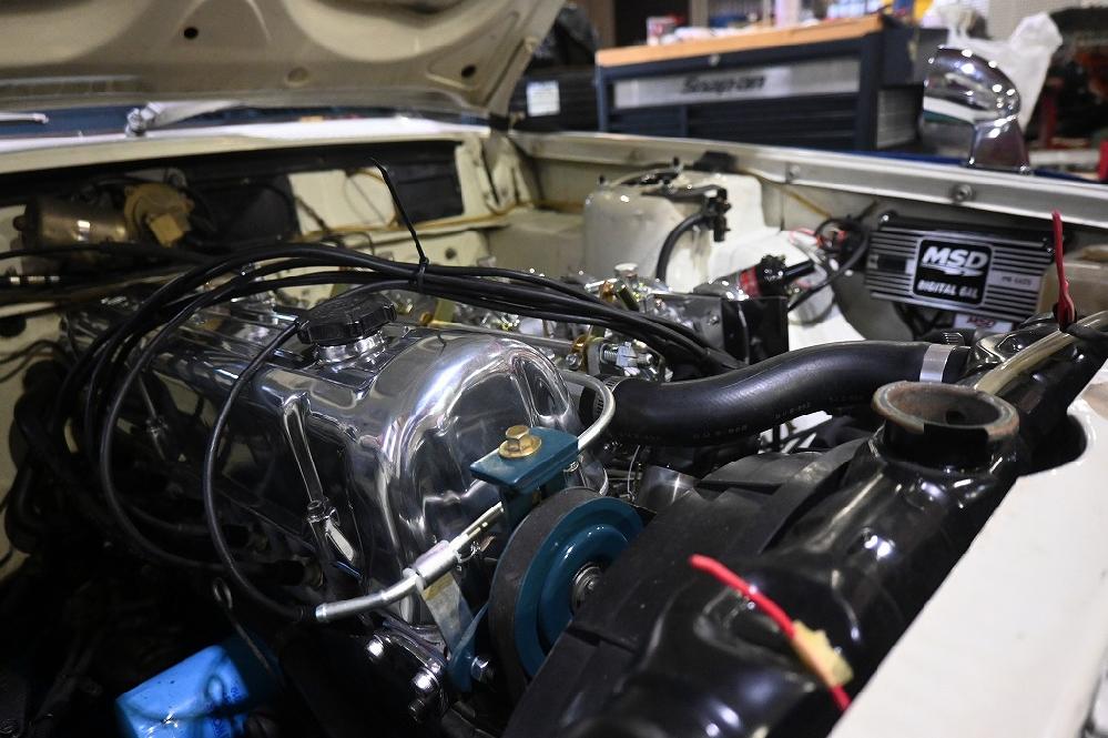 プラグコードは、デストリビューターの固定位置を確認する為に他のプラグコードを仮で固定しています。