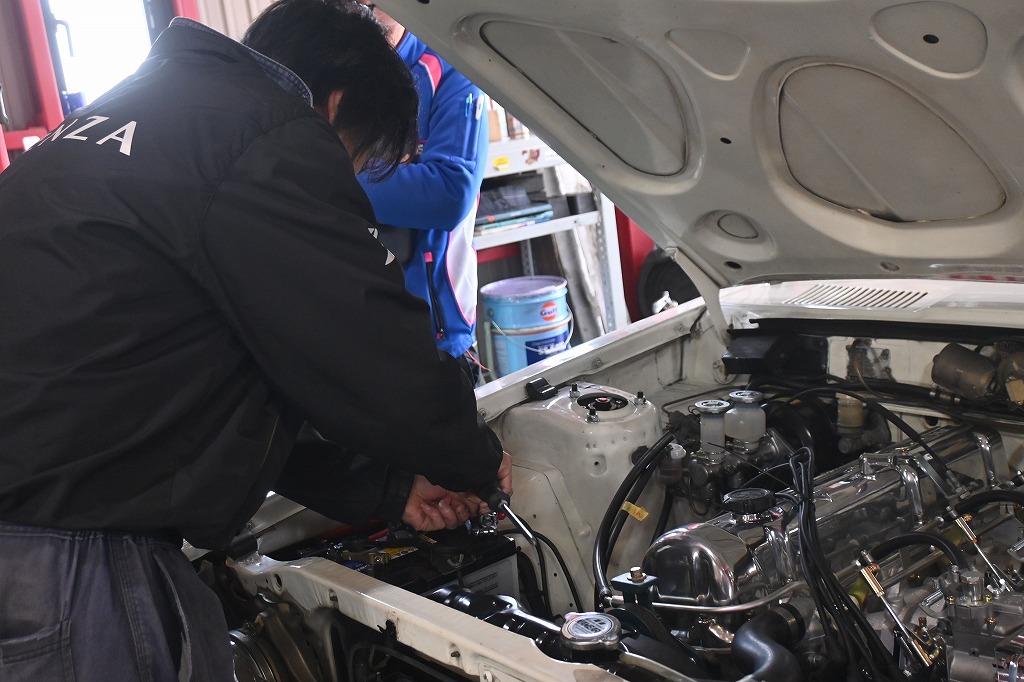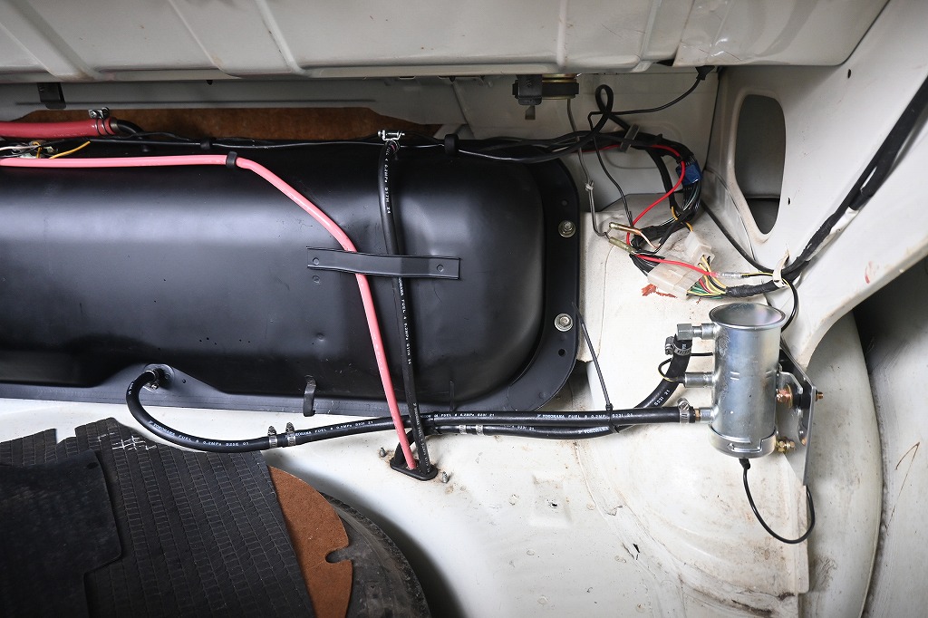 ガソリンタンクの燃料ホースも全て新しく作り替えました(*^-^*) 新品の燃料ポンプでガソリンをエンジンに送っています。 ホースベルトも全て新品です(*^-^*) トランクルームの仕切り版を少し加工しました(*^-^*) 燃料ポンプに当たらない様に切り取っています。 引き続きバッテリーハーネスの引き直しを行いました(*^-^*) 古いハーネスでは、電圧が安定しません。