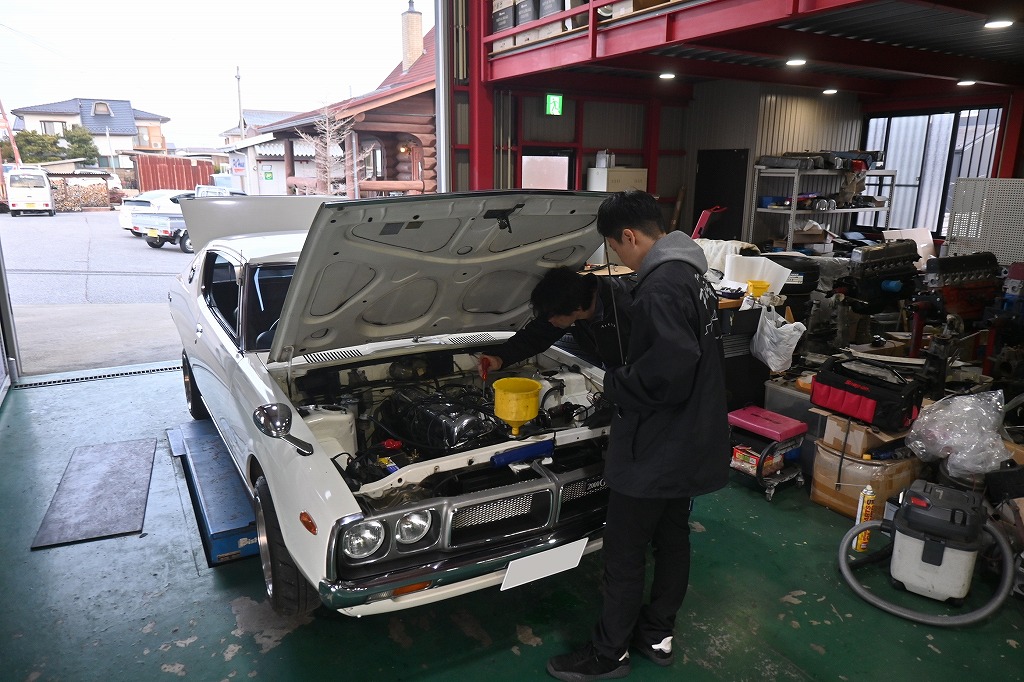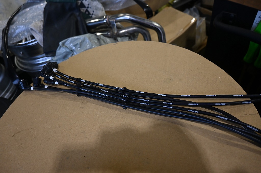 オーナー様(*^-^*)エンジンが始動しました(*^-^*) この写真は、初エンジン始動した時に写真です。 綺麗な排気ガスが出ています。 早速、工場長がキャブ調整に入りました(*^-^*) 最初にエンジンの揺れを綺麗に止めて行きます。 明日から、キャブ調整に入ります。 OS技研さんで作って頂いたプラグコードも長さを調整して製作します。 オーナー様(*^-^*)いい音していますよ(*^-^*)