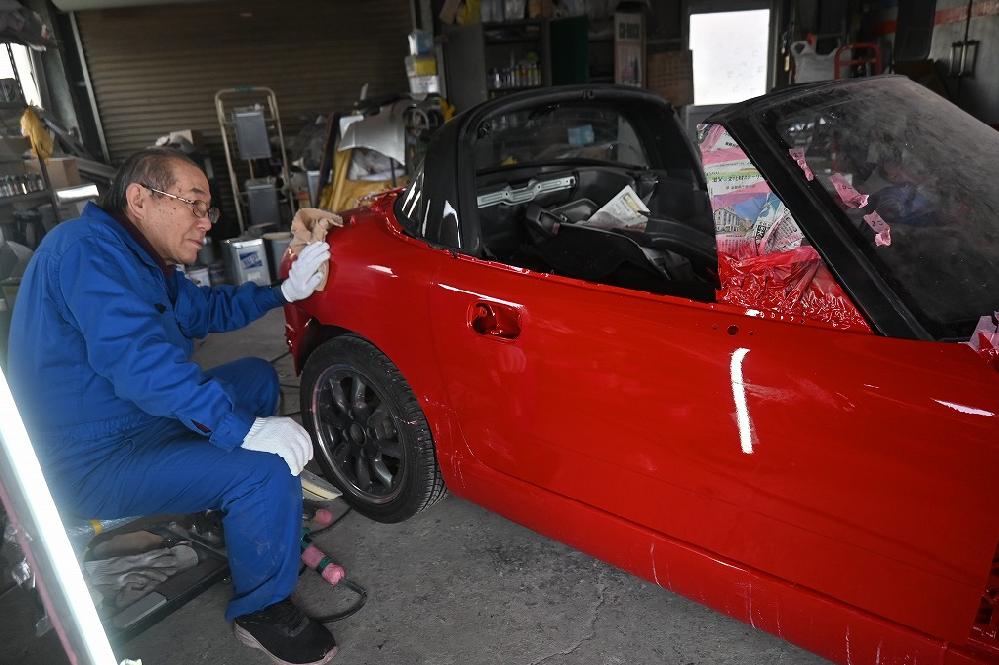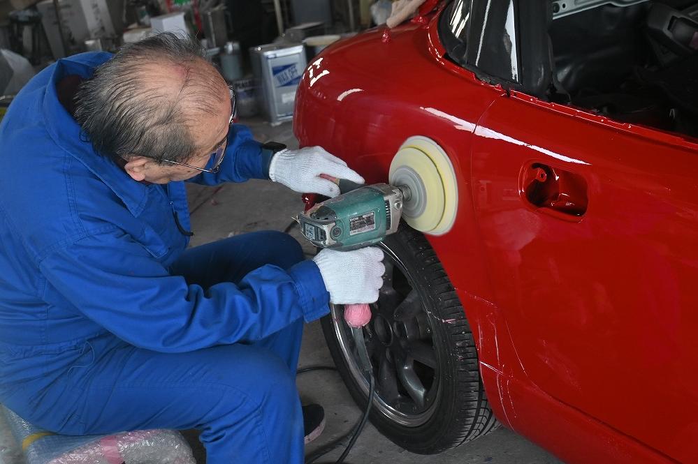本日の熟練マイスターは、カプチーノ君の磨き作業を行いました(*^-^*) 光沢を確認しながら磨きを行います。 カプチーノ君もクリア塗装を厚く吹付けています(*^-^*) 磨きを掛けると鏡面の光沢が出て来ます。 現在、僕の拘る軽スポーツ計画で軽スポーツを増やしています。 価格は、お安い軽スポーツでも皆さん、綺麗な車に乗って楽しみたいですね(*^-^*) 僕の拘りは、軽スポーツでも同じです(*^-^*)