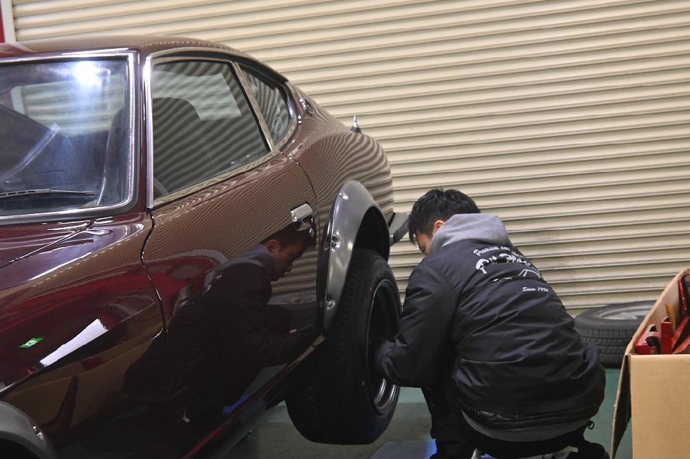 倉庫から、大阪240ZG君を運んで来ました(*^-^*) 車検を無事に通して、倉庫で保管していました。 納車前整備に入りました(*^-^*) 新品のワタナベホイールを装着して行きます(*^-^*) 凄く綺麗です(*^-^*) オーナー様、ワタナベホイールを装着しました(*^-^*) 迫力満点ですね(*^-^*)