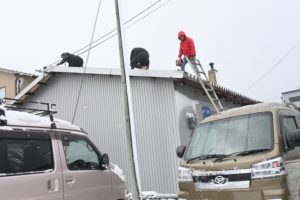本日の定休日は、屋根の修理に職人さんが来て下さいました。 あいにくの雪で作業も悪戦苦闘ですね(^▽^;) 今回は、屋根のパネルと雨桶を新しく交換して頂きます(^-^) 朝から作業に入り午後の2時には、作業が終了しました(^-^) これで雪が積もっても安心です(*^-^*)