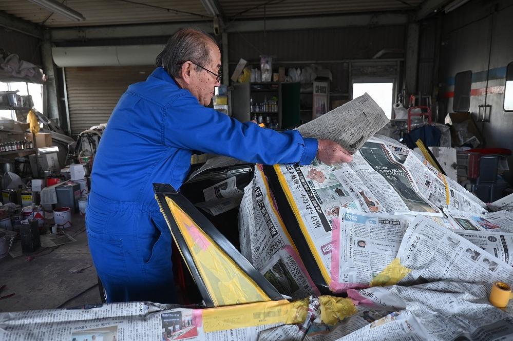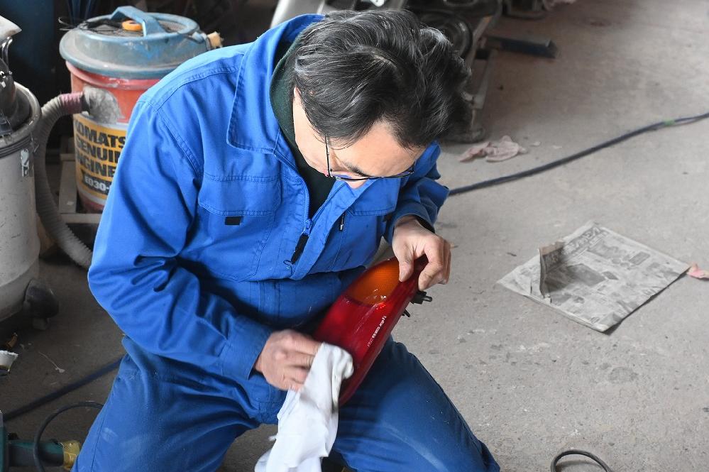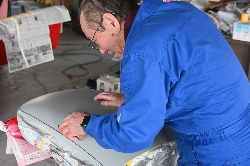本日も引き続き、カプチーノ君の塗装作業を行いました(*^-^*) 細かなパーツも順番にブロック塗装で仕上げて行きます。 熟練マイスターが、ルーフパネルのサフ研ぎ行って下さいました。 これが最終の研ぎになります(*^-^*) ジュニア君が、ヘッドライト・リアテールの足ズケ作業をして下さいました(*^-^*) 今回のカプチーノ君は、ヘッドライトコーティングと一緒にリアテールもコーティングを行います(*^-^*)