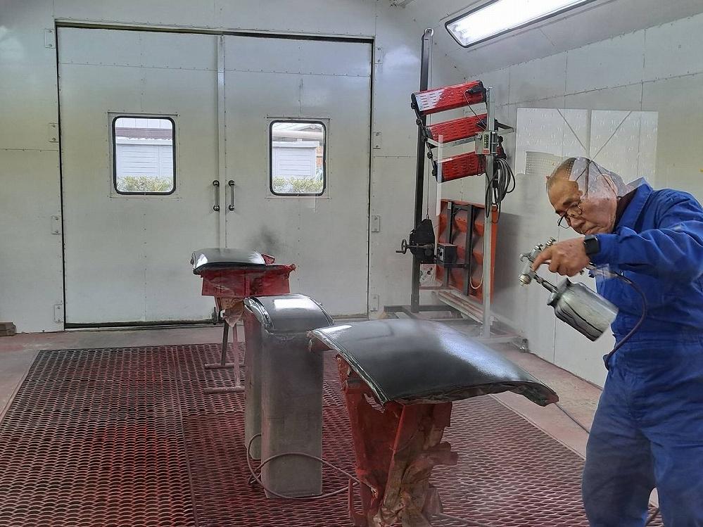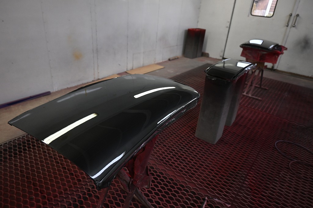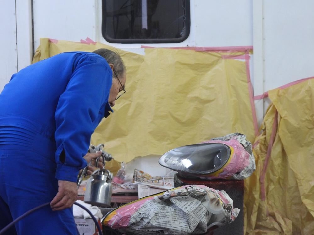 午後から、熟練マイスターがルーフパネルの塗装をして下さいました。 下地塗装から塗装を塗り重ねて行きます。 最終にクリア塗装を行い完成です(*^-^*) 綺麗な光沢が出ました(*^-^*) 引き続き、夕方からヘッドライト・リアテールレンズのコーティングを行いました(*^-^*) ヘッドライトコーティング専用のコーティング剤をエアガンで吹付けて行きます(*^-^*) 市販のコーティング剤は、手で塗りますが、業務用の専用剤は、塗装と同じ様にブースで熱を入れて吹付けます。 耐久性が大きく違います(*^-^*)プロが綺麗に仕上げると長く綺麗に乗って頂けます(*^-^*)
