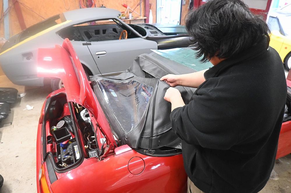 HOME > 本日のピットハウス 2/11 赤ビート君 幌修理