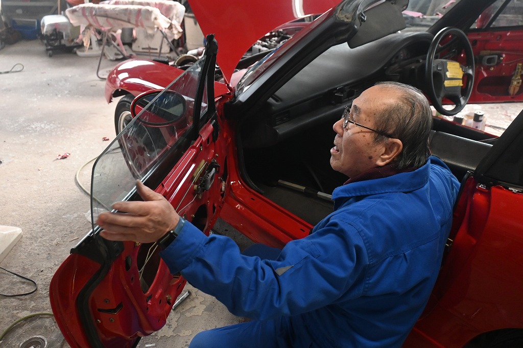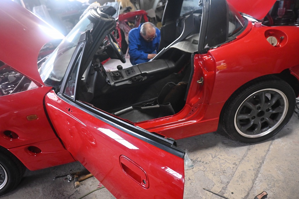 ドアゴム・水切りモールも順番に組付けて行きます(*^-^*) 工場長が、配線修理に来て下さいました(*^-^*) 電装の作業は、工場長が行っています。 毎日、順調に組付けを行っています(*^-^*) もう少しで完成です(*^-^*) 月末から、赤ビートU君のボディ加修に入ります。 準備宜しくお願い致しますm(__)m