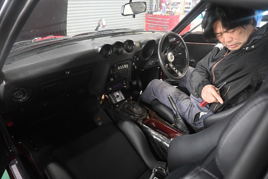 本日の工場長は、一日掛けて大阪240ZG君のキャブ調整を行いました。 走行テストを繰り返し行うと、エンジン音も心地よい音に変わってきました。 今日は、最高のテスト走行日和でした(*^-^*) フルレストアで仕上げたボディ合成も完璧です。 やはりボディ補強は、凄く大切です。 走行テストを繰り返し行い、異常を確認しました。 早速、室内に排気ガスが入って来ました(^▽^;) センターコンソールを外して、ミッションのブーツを確認しました。