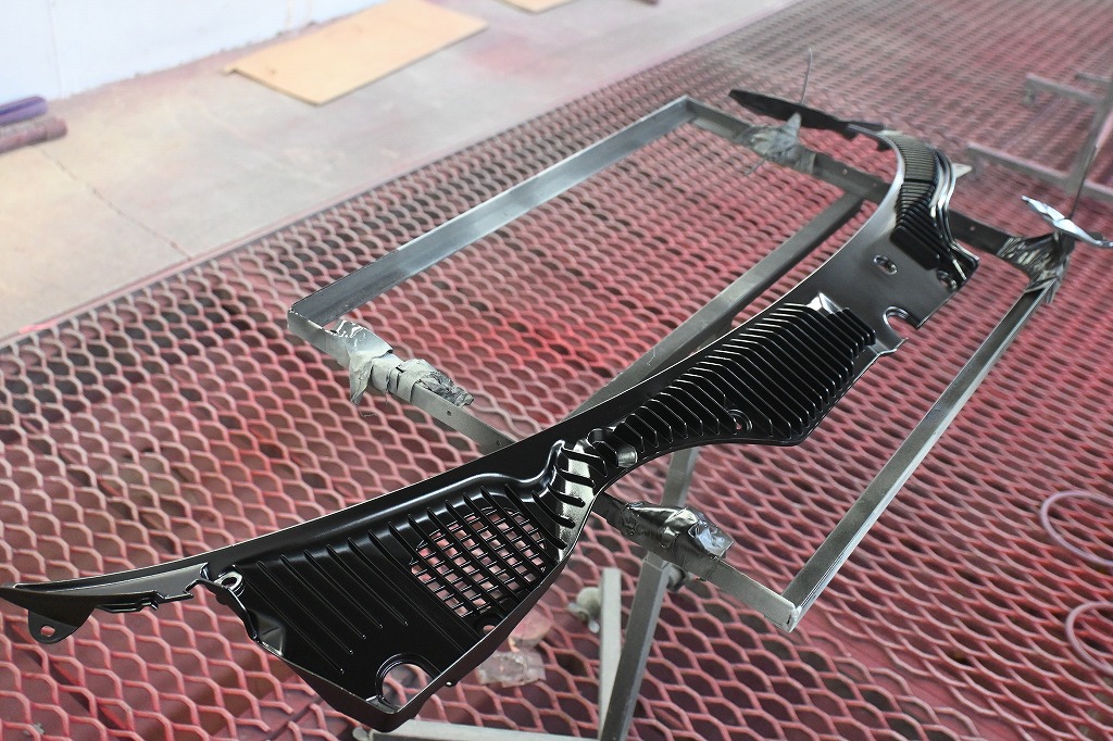 本日の熟練マイスターは、引き続きカプチーノ君の塗装作業を行いました。 塗装前に仮のフィッテングで状態を確認します(*^-^*) 塗装を行いました(*^-^*) 艶消し黒で塗装を行いました。 カプチーノ君のカウルトップパネルも綺麗に塗装を行いました(*^-^*)