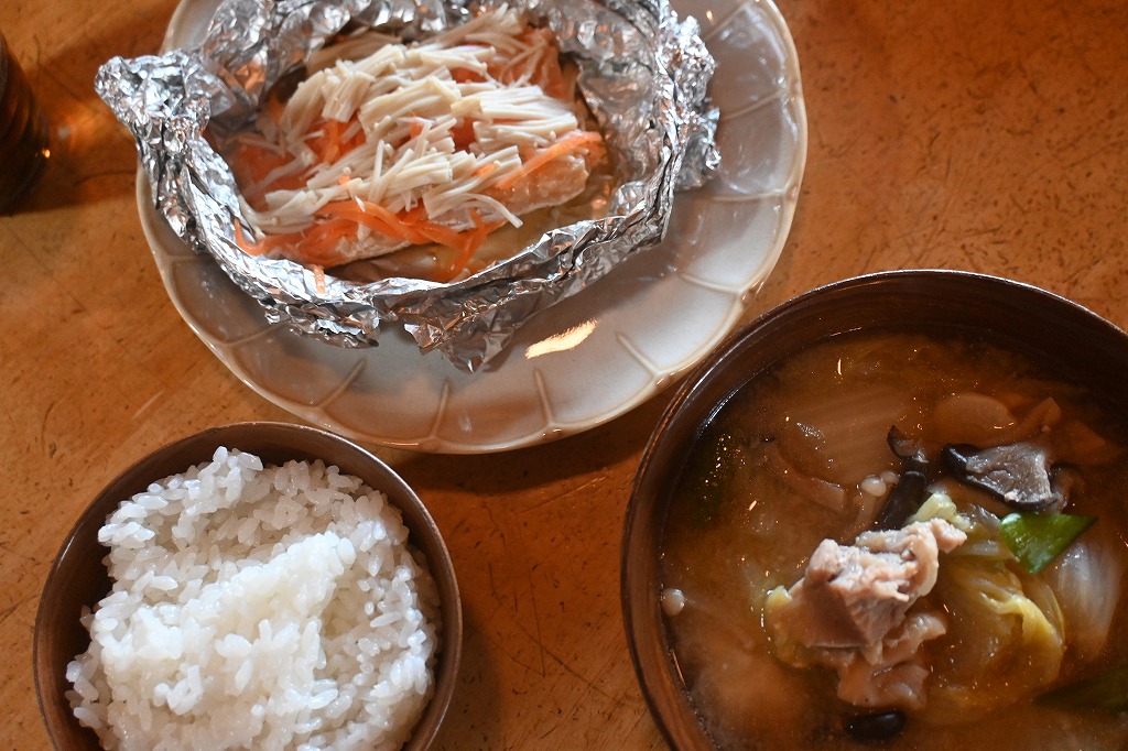 kaorinが、サーモンのホイル焼き・団子汁を作って下さいました。