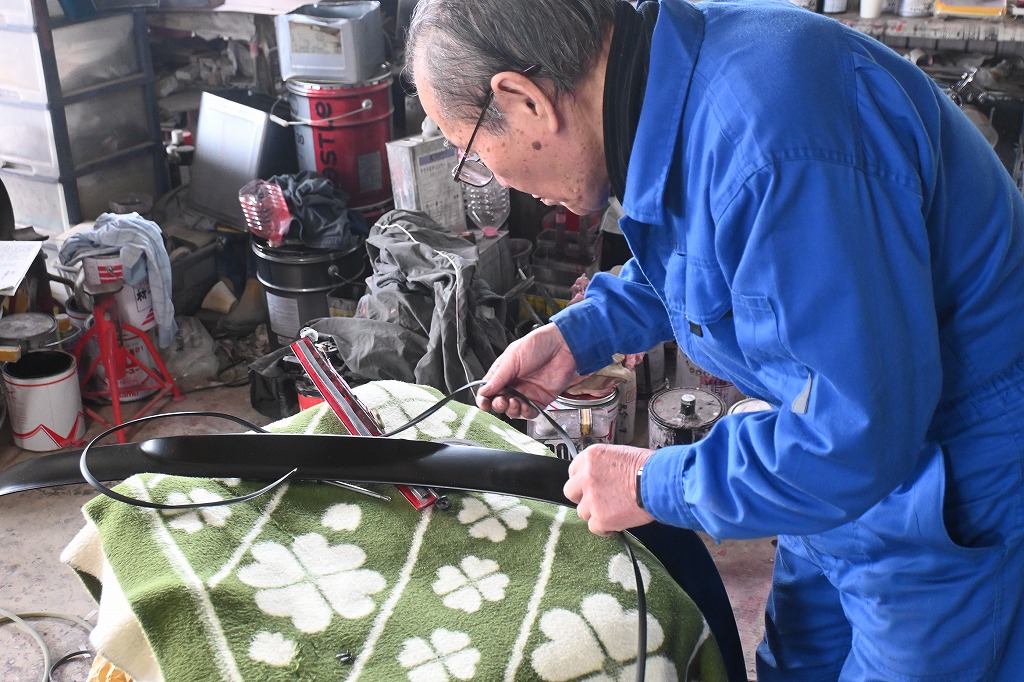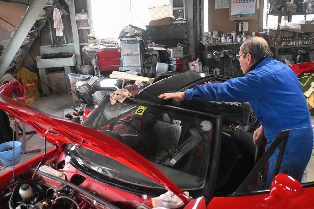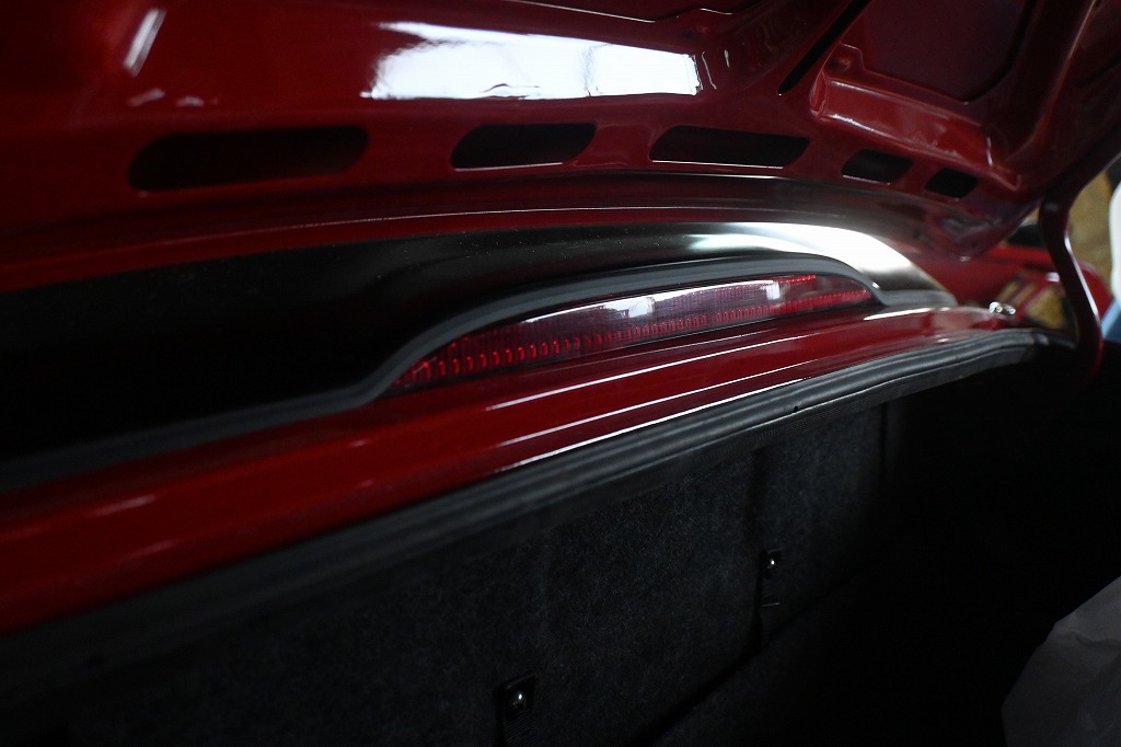 熟練マイスターも、順番に組付け作業を進めて行きます。 ゴム類は出来る限り新品に交換して行きます。 リアのストップランプも綺麗に装着しました。 LED球もしっかりと点灯しました。 熟練マイスターは、ルーフのパネルをはめ込んで行きます(*^-^*) カプチーノのルーフは、3分割で固定されています。 ルーフの組付けは、軽のオープンカーで一番大変な作業ですね(^_^;)