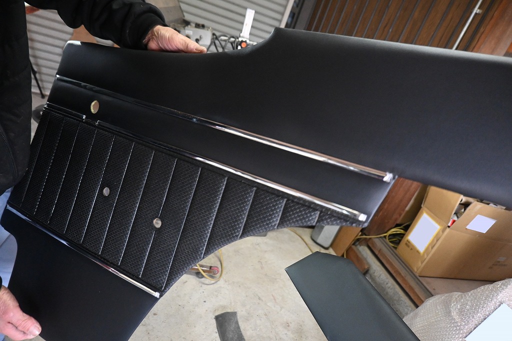 鳥取ハコスカGTR君の内張が完成しました(*^-^*) ピットハウスの熟練マイスターが拘り仕上げています。 真中の瓢箪柄は、純正の内張を使い綺麗に加工しています。 純正の内張を使うと本物と同じクオリティーで仕上がります。 オーナー様(*^-^*)綺麗ですよ(*^-^*) 長く待って頂き申し訳ございません。 千葉出張から帰って来たら、梱包して送らせて頂きます。 もう少しお待ち下さいね。