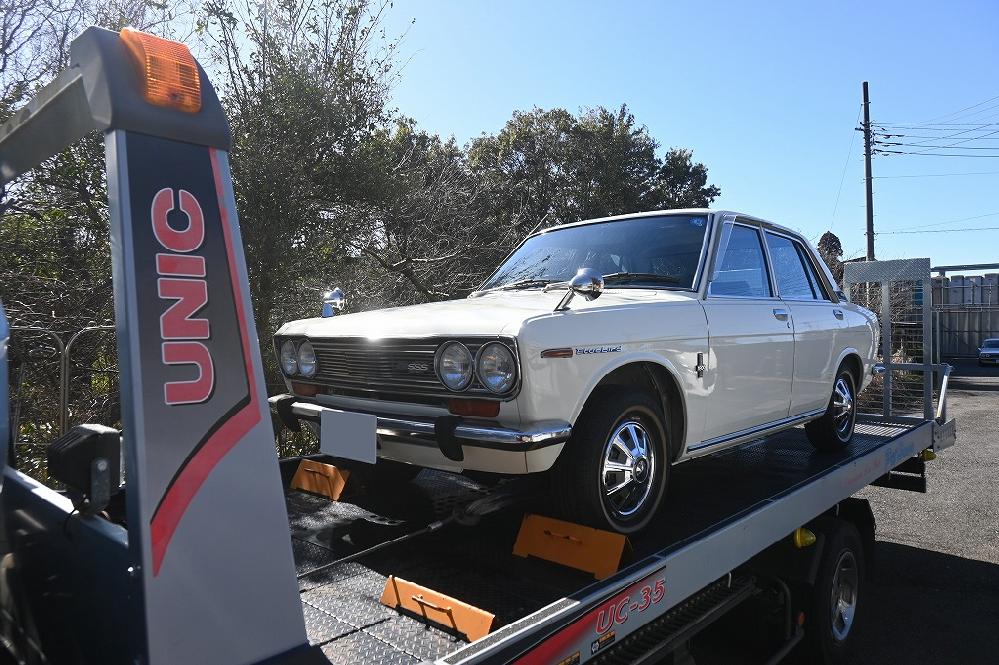 千葉ケンメリ君のオーナー様と千葉ブルーバード君のオーナー様と2時間以上楽しく会話を楽しみました(*^-^*)最高の時間は短いですね(^▽^;) これより滋賀県に向けて帰路に着きます(*^-^*) ブルーバード君を積載車に載せました(*^-^*) 2年前よりボディが綺麗に磨かれています(*^-^*) オーナー様の愛情が伝わりますね(*^-^*) 千葉ケンメリ君のオーナー様に米屋さんのどら焼きをお土産に頂きました。僕の大好きなどら焼きを頂きました(*^-^*) 土曜日と日曜日の3時の休憩でスタッフ・お客様と一緒に美味しく頂きますね(*^-^*)感謝感謝です(*^-^*)