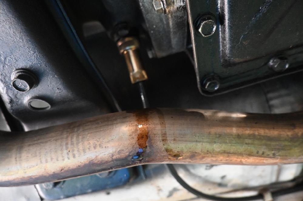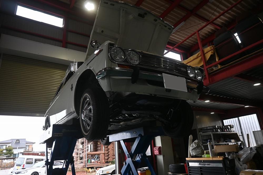 工場長が、朝一番に千葉ブルーバード君を積載車から降ろして下さいました。長旅お疲れ様です(*^-^*) 今日から車検整備と点検を行います(*^-^*) ボディ裏も凄く綺麗なお車です。 オーナー様からお聞きしていたオイル漏れを見付けました。 これは、凄く危険ですね(^▽^;) エンジンに近いマフラーに漏れたオイルが付着しています。 これは、修理を行います。 PS オーナー様(*^-^*)明日、工場長に電話を頂けると助かります。 作業の説明と打ち合わせを宜しくお願い致しますm(__)m