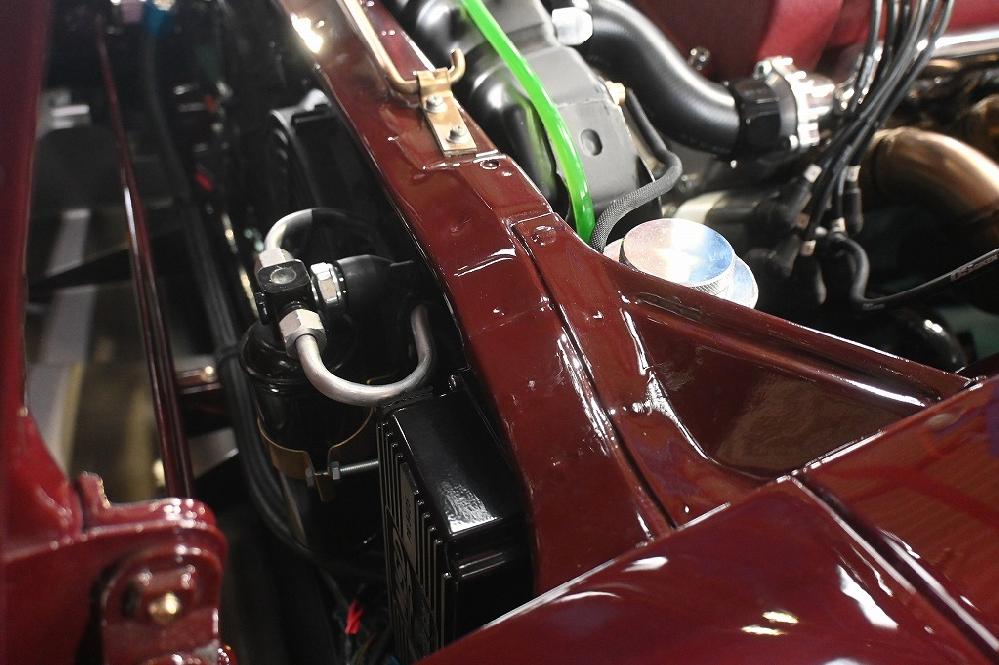 本日の工場長は、愛知240ZG君にクーラーガスを入れて行きました。 今回、TC24エンジン専用のクーラー配管を全てワンオフで制作しました。 タンク回りの配管も全てデザインから行い製作しています。 今日は、真空引きとガスチャージを行いました。 コンプレッサーも元気よく回りました(*^-^*) やはり寒い時期は、クーラーガスが思う様に入りません(^▽^;) 時間を掛けて何度かに分けてガスを入れて行きます(^-^)