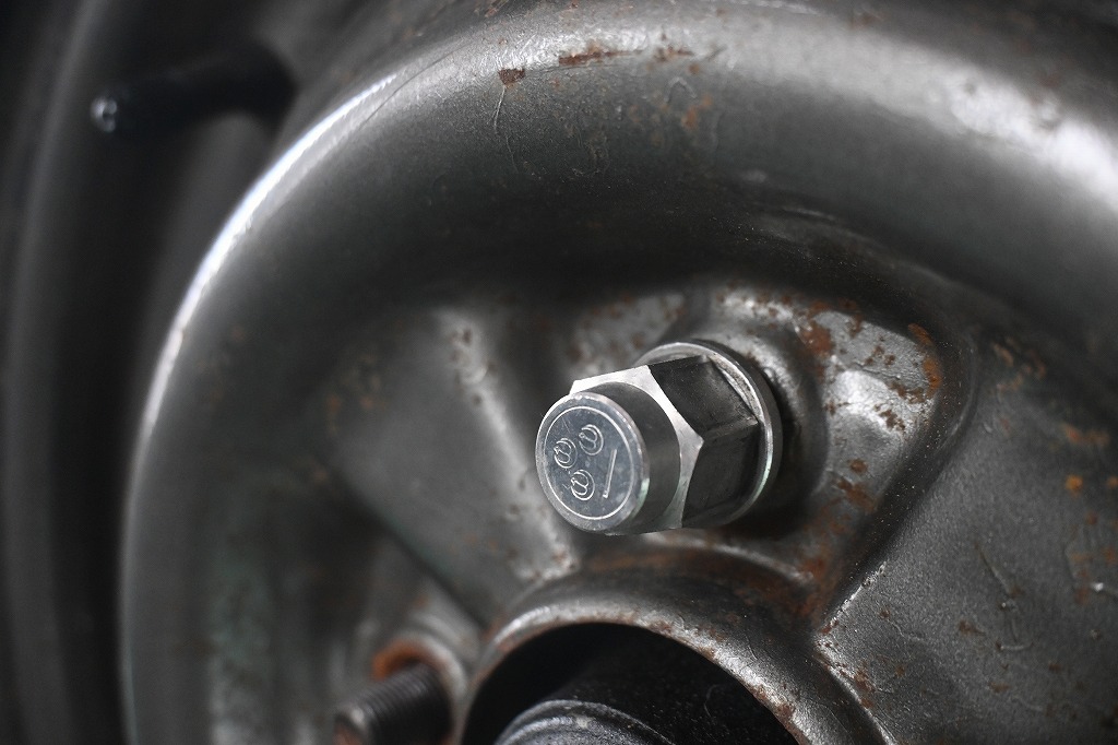 本日も引き続き千葉ブルーバード君の車検整備を行いました(*^-^*) 今日は、順番にオイルの交換から行いました(*^-^*) ブレーキの整備に入る前に、ナットを確認するとワタナベのナットが装着されていました(^▽^;) このナットでは、しっかりと固定出来ません(^▽^;) ナットの先を見て下さいね(^▽^;) 2ミリくらいしかナットがしまっていません(^▽^;) 純正のナットに交換します(^-^)