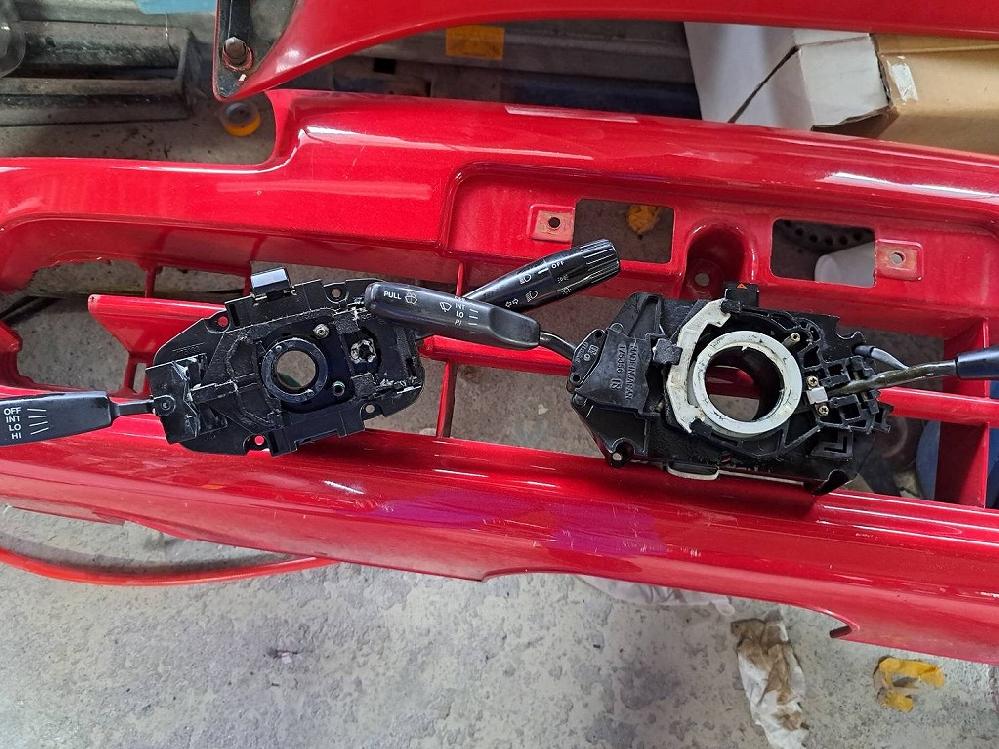 部品取りのカプチーノからパーツを外して見比べましたが、この子は、新車からエアバックが装着されていました。部品が違います(^_^;)