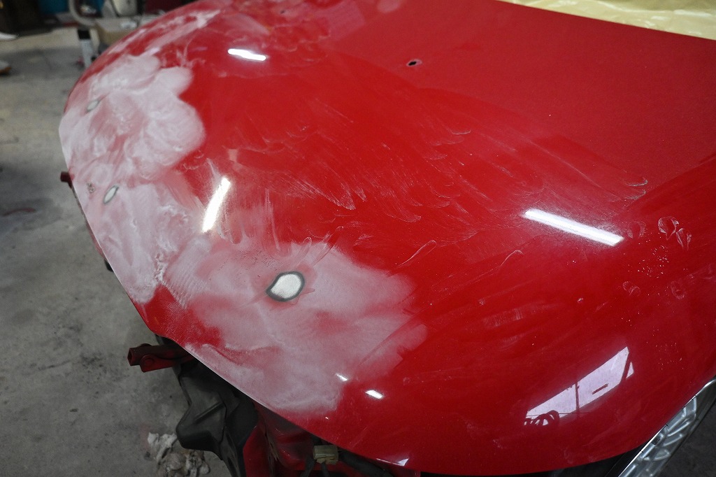 本日の熟練マイスターは、引き続き赤ビートU君のパーツ外しを行いました(*^-^*) 午後に作業を見に行くと、剥離作業に入っていました(*^-^*) この子は、以前にも綺麗に塗装をされていました(^-^) やはりボンネットには、飛石の凹みが見付かりました(^▽^;) 凹みを鈑金修理で、綺麗に修復して仕上げて行きます。 オーナー様(*^-^*)明日は、工場長が確認に行きます(^-^) これからも楽しく見ていて下さいね(*^-^*)