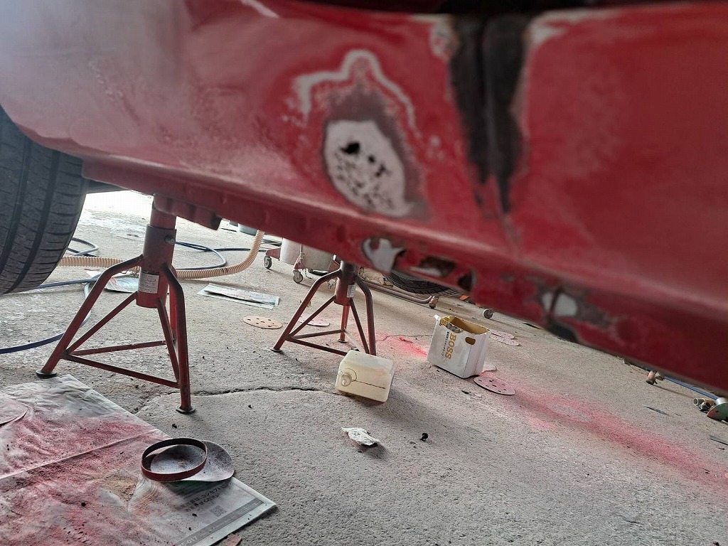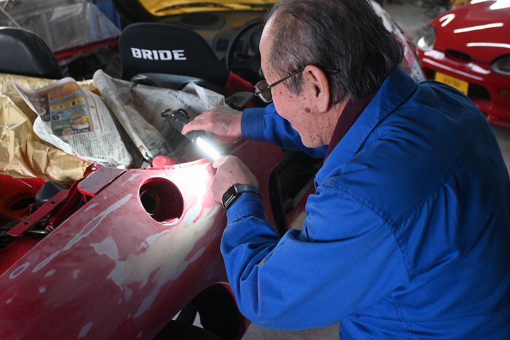 何と(;゚Д゚)赤ビートU君のステップに腐食穴が出て来ました(^▽^;) 腐食鉄板を大きく切取り、ボンデ鋼板を使い綺麗に修復を行いました。 午後から作業を見に行くと、腐食穴修理が終わっていました(^▽^;) 今日は、税務申告でお店で仕事をしていました(^▽^;) オーナー様(^_^;)作業写真が撮れず申し訳ございませんでしたm(__)m 燃料キャップを外して腐食が出ていないか確認して行きます。 熟練マイスターは、細かな隙間の錆も念入りに確認して修理を行います。