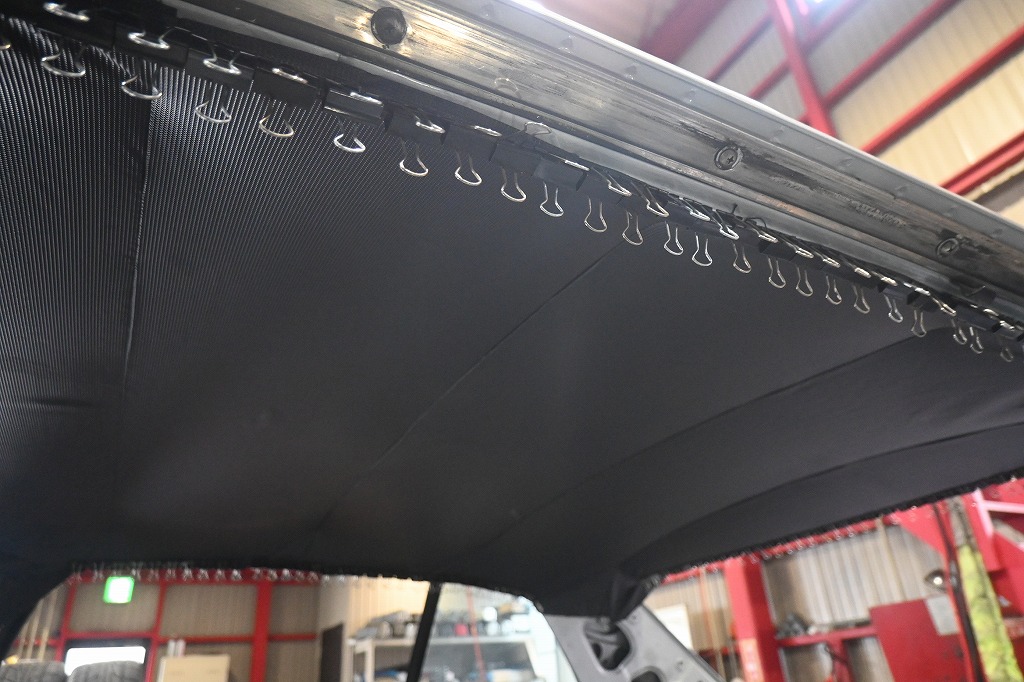 本日も引き続き大阪ハコスカ君の天張り張りを行いました(*^-^*) 天張りは、一週間掛けて順番に張って行きます。 (^_^;)ん〜まだ天張りにシワが見えますね(^▽^;) 工場長が毎日、シワを伸ばして綺麗に天張りを張って行きます。 オーナー様(*^-^*)綺麗に仕上げますね(*^-^*)