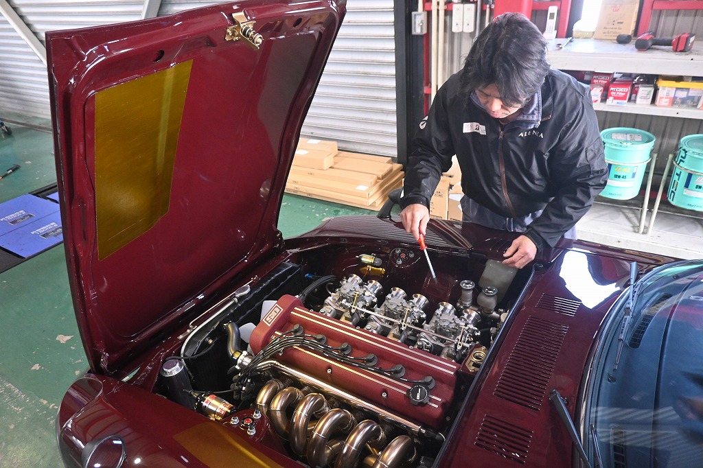本日も引き続きキャブ調整を行いました(*^-^*) 今日の天候が少し悪く天気を見てテストを3本行いました(*^-^*) オーナー様(*^-^*)今日のエンジンルームです(*^-^*) 凄く気持ちよく吹き上がる様になりました。 走りの加速も抜群です(*^-^*)これぞTC24エンジンですね(^▽^;) 普通のL型では、ここまでの加速が出来ません(^-^) オーナー様(*^-^*)週末の天候を見て高速テストを行います。 納車までもう少しです。楽しみにお待ち下さいね。