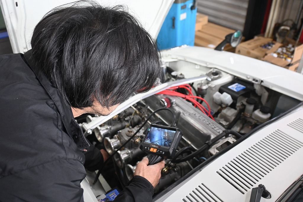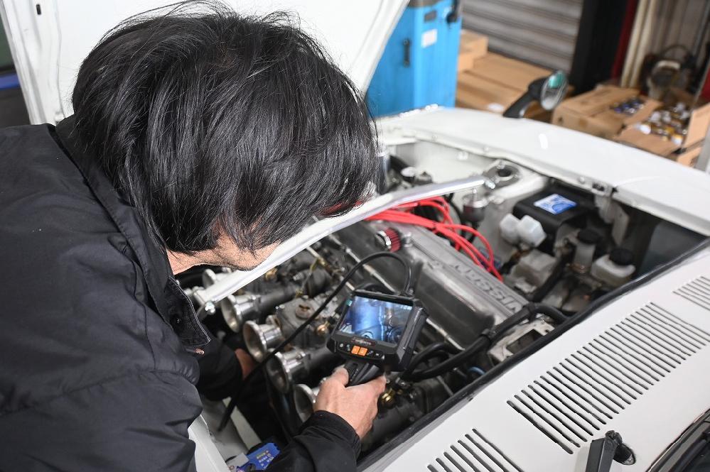 キャブレターからのガソリン漏れが危険なのでファイバースコープを使い状態を確認しました。