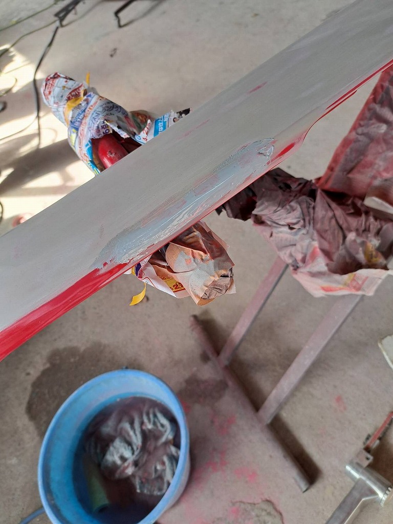 何と(;゚Д゚)リアスポイラーの継目に亀裂が見付かりました(^▽^;) これは経年劣化ですね(^▽^;) 早速修理を行いパテを打ちました(^▽^;) やはり研ぎを行うと、全体に薄くFRPの継目が見えて来ました(^_^;) 慎重に作業を進めて行きます。 今回は、バックパネルも塗装する事にしました(*^-^*) トランクフードを開けると、バックパネルが見えます。 目で見える部分は、全て塗装を行います。 オーナー様(*^-^*)作業は、順調に進んでいますよ(*^-^*)