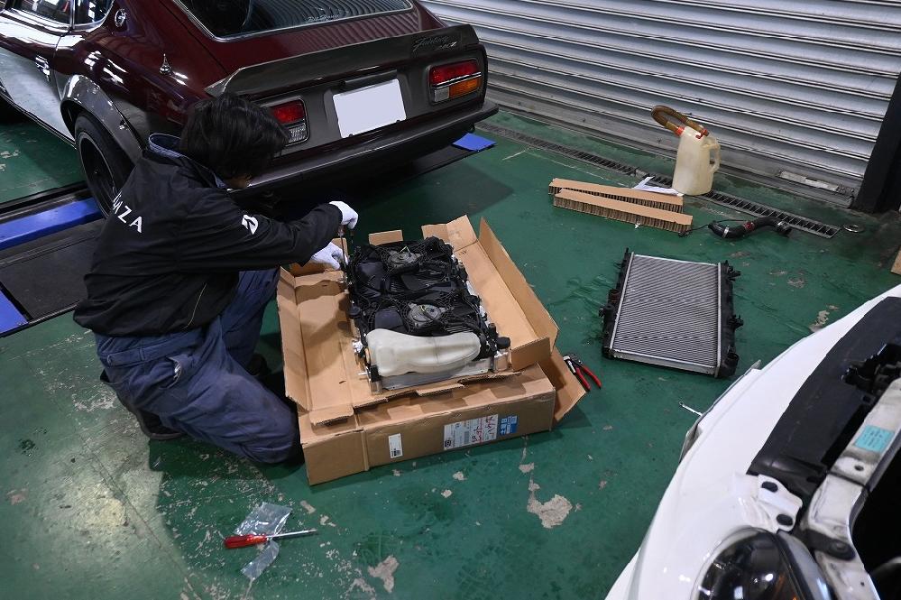 本日の工場長は、インプレッサ君のラジエター交換を行いました。 何と(;゚Д゚)社外のラジエターの厚みが太く、加工が必要になりました。 ラジエターを外しました(^-^) オイル漏れがないか確認して行きます(*^-^*) 日頃の点検で大きなトラブルを防げます(*^-^*) 固定金具の加工を行いました(*^-^*) ラジエターが太くなり出来る限りベルトから放して固定して行きます。