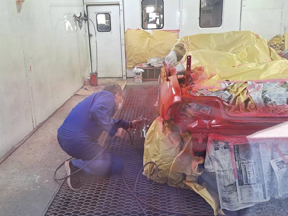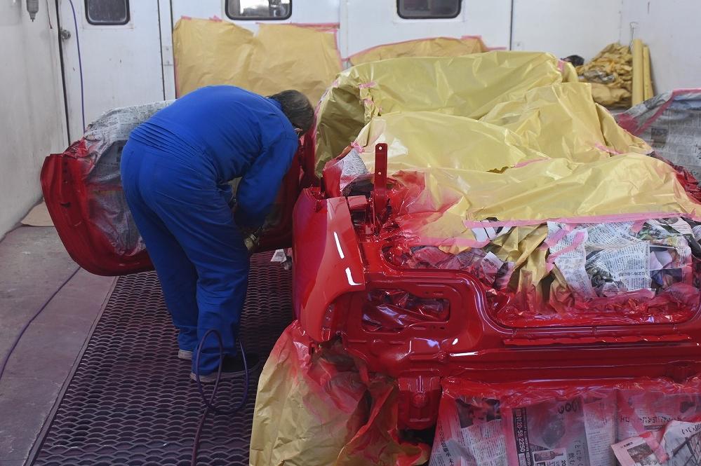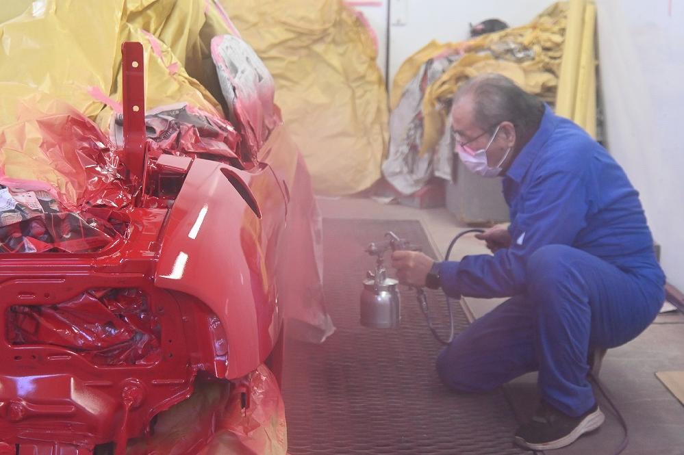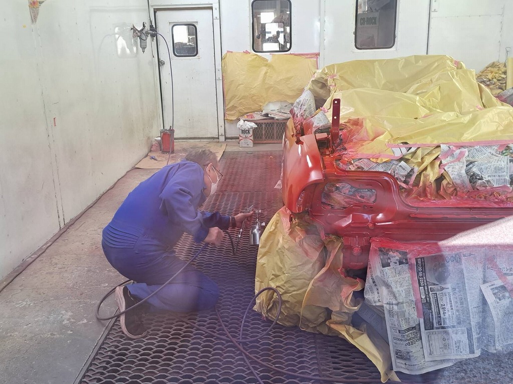 夕方から塗装作業に入りました(*^-^*) ベースの赤色を綺麗に染めて行きます(*^-^*) 2層目の塗装で光沢が出始めました(^-^) 作業を横で見ていましたが、凄く綺麗な赤色です(*^-^*) ドアの内側から室内のステップまで塗装を飛ばして行きます。 オーナー様(*^-^*)凄く綺麗な赤色です(*^-^*) やはりS660の赤色に塗装して良かったですね(*^-^*)