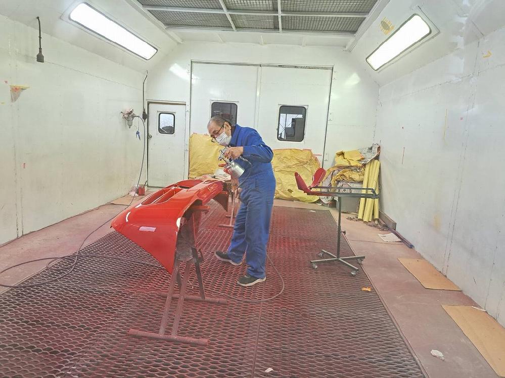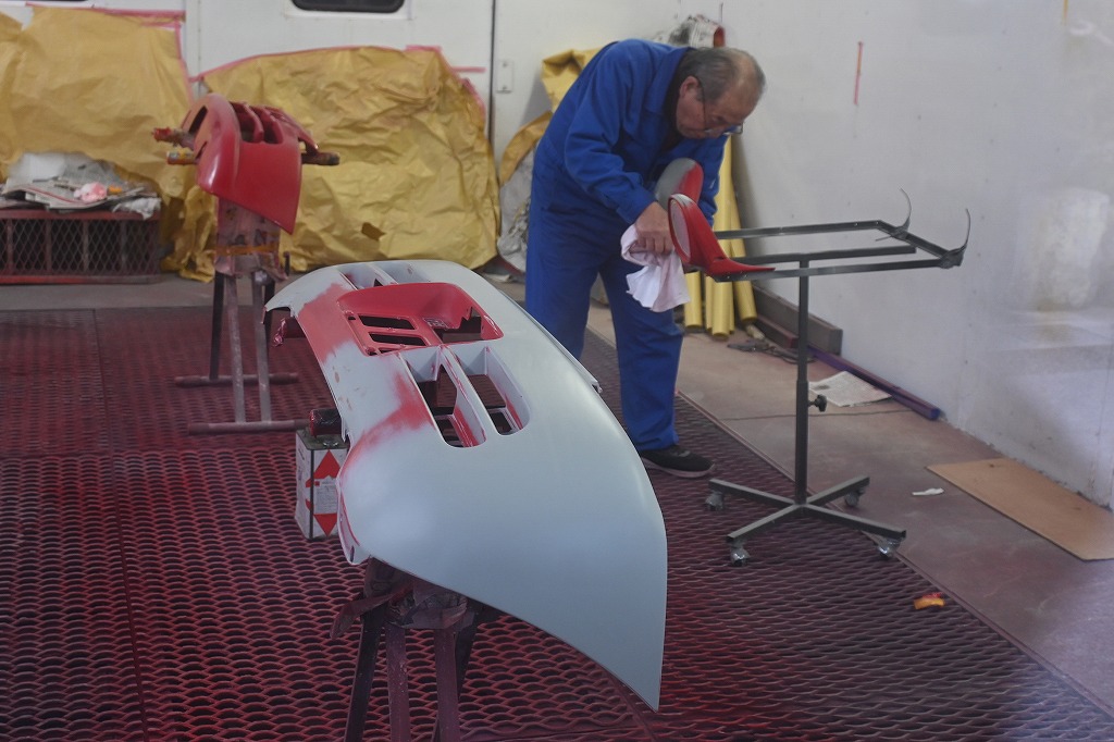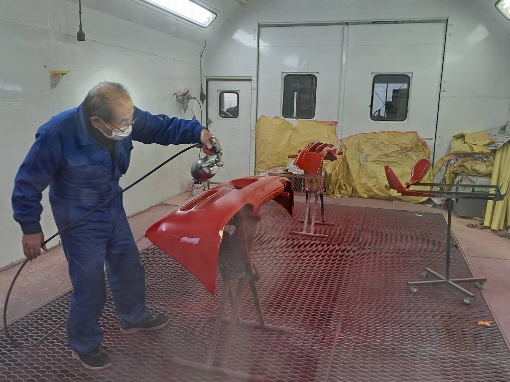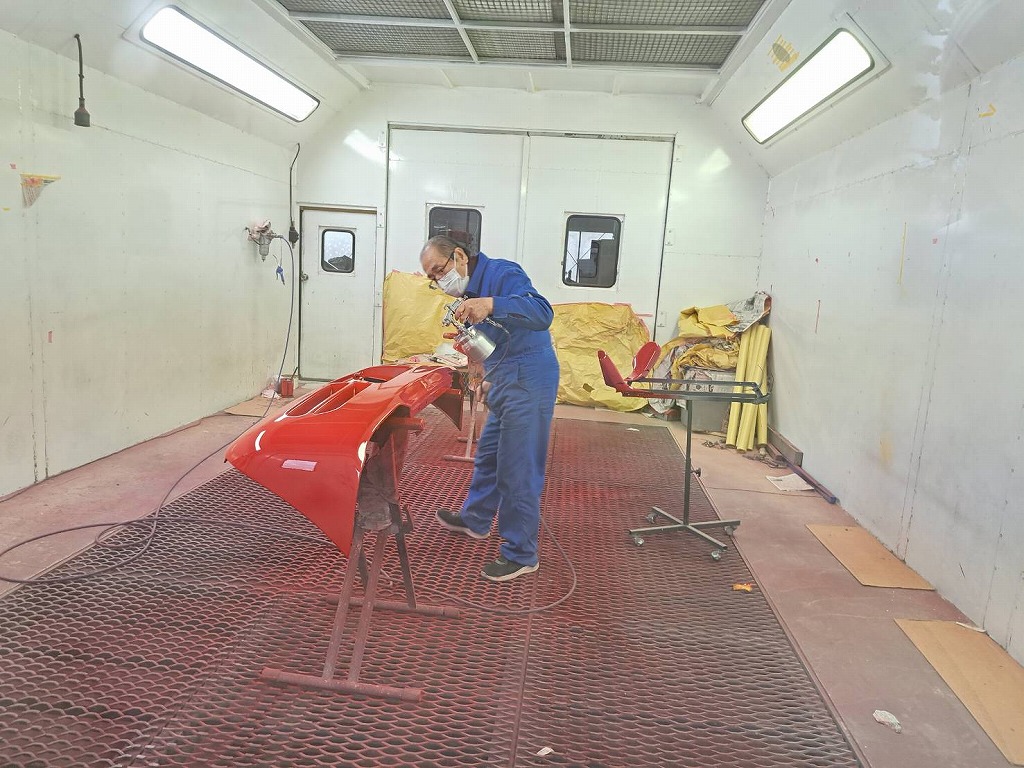 午後から、最終の塗装作業に入りました(*^-^*) これで赤ビートU君のパーツ塗装も全て終了します。 午後から塗装に入りました(*^-^*) 何層にも塗装を吹き付けて行きます。 綺麗な光沢が出て来ました(*^-^*) 最終にクリア塗装に入りました(*^-^*) クリア塗装も3層に分けて塗装を行いました(^-^)