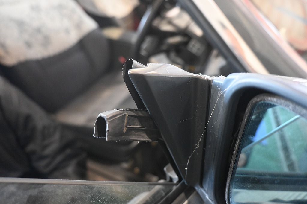 引き続き、ウエザーゴムの修理を行いました(^▽^;) ドアのウエザーゴムが経年劣化でボディからはみ出していました(^▽^;) パワーウィンドウに挟み込まない様にゴムを加工させて頂きました。 PS オーナー様(*^-^*)本日、僕もテスト走行を行いました。 運転サポートシステムでもテストを行いました。 サイドブレーキの効きが少し弱く感じました(^_^;) 今回の点検で問題は見付かりませんでした。 休み開けに再度テストを行います。