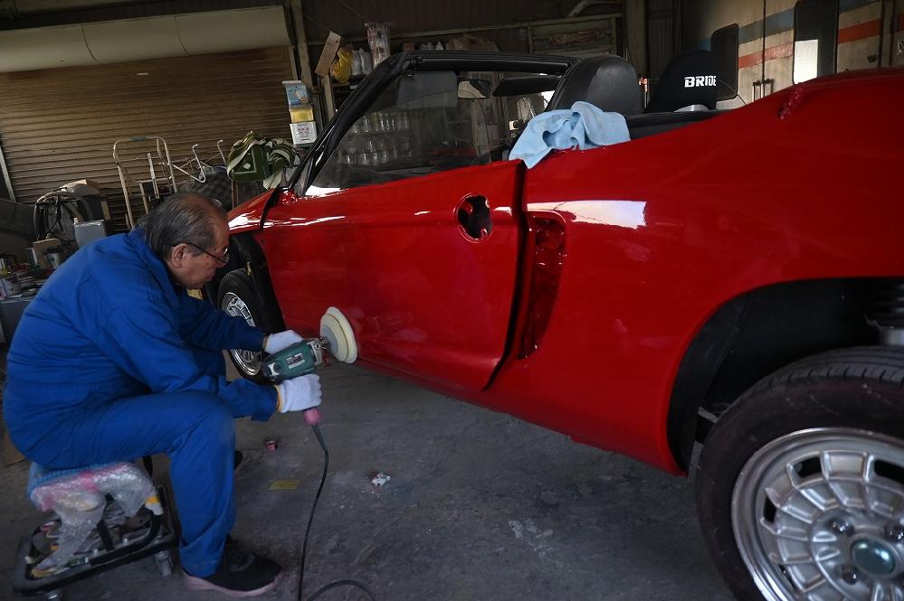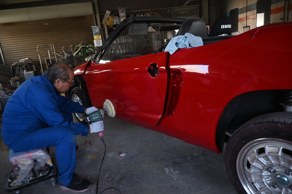 本日も引き続き赤ビートU君の磨き作業を行いました(*^-^*) クリアー塗装を綺麗に磨いて行きます。 綺麗な光沢が出ると鏡面に仕上がります(*^-^*) オーナー様(*^-^*)今週中に磨きを終わらせますね(*^-^*) 楽しみにお待ち下さいね。