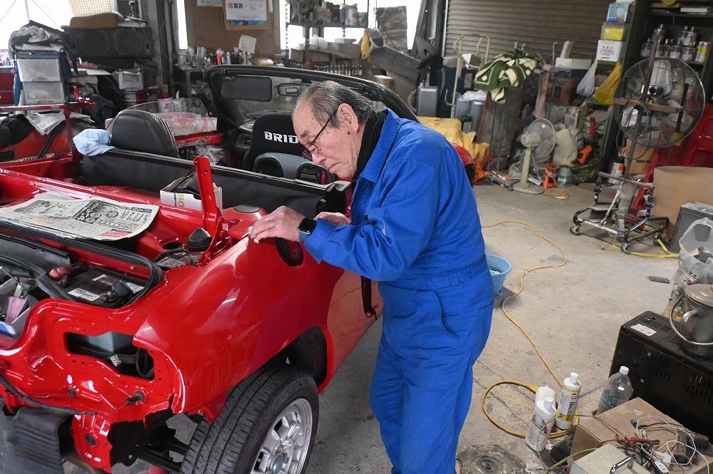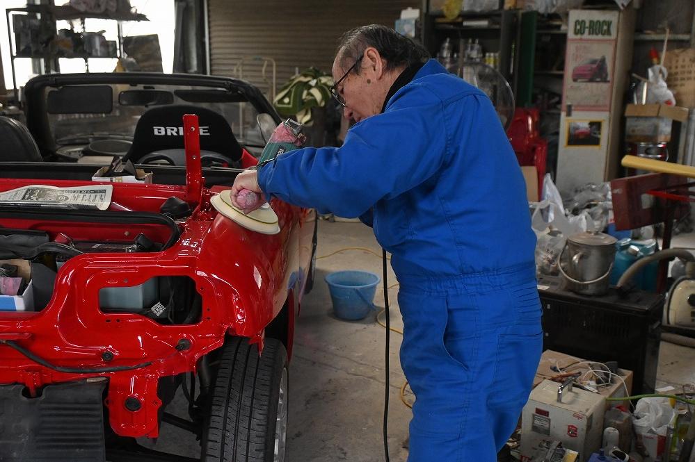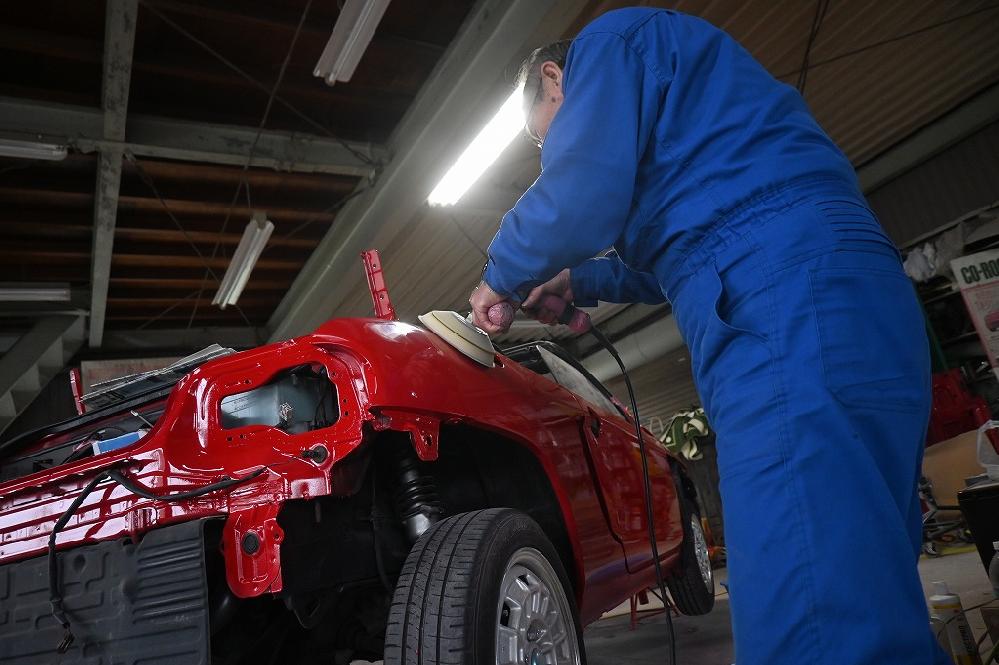 本日の熟練マイスターは、引き続き赤ビートU君の磨き作業を行いました(*^-^*) 小さなゴミかみを先に削り取って行きます。 磨き作業に入りました(*^-^*) 綺麗な光沢が出て来ました(^-^) オーナー様(*^-^*)下のアングルからも見て下さいね(*^-^*) リアフェンダーのミミも綺麗に磨いています。
