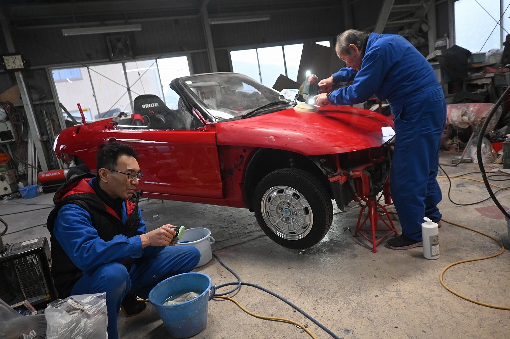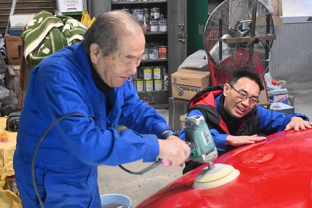 午後から、ジュニア君も一緒に磨き作業を行って下さいました(*^-^*) ジュニア君は、目が凄く良く小さなゴミかみも見逃しません(^-^) 2人で作業を行うと作業も早く進んで行きます(*^-^*) 何と(;゚Д゚)午前中に作業を行ったリアフェンダーに小さなゴミかみを見付けました(^▽^;)僕も気が付きませんでした(^▽^;) オーナー様(*^-^*)磨き作業も順調に進んでいます(*^-^*) 毎日、確認を行い作業を進めています(*^-^*) 楽しみにお待ち下さいね。