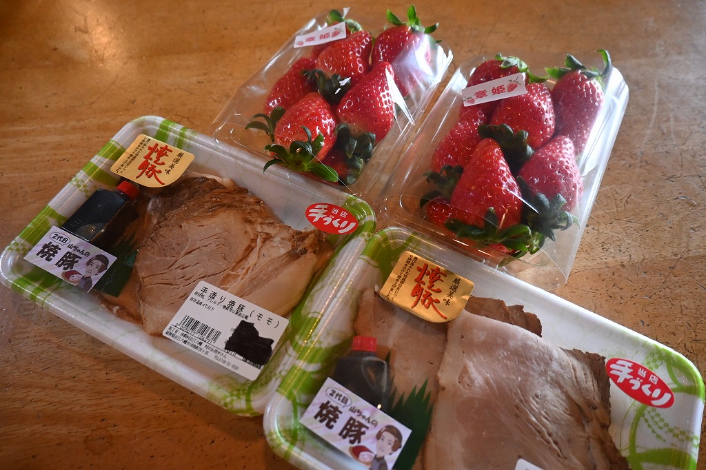 毎年、夏には大きな大中スイカを頂きます。今日は大きなイチゴと手作り焼き豚を頂きました(*^-^*)