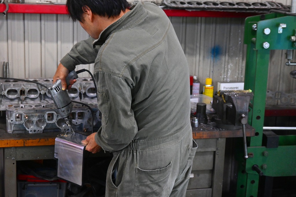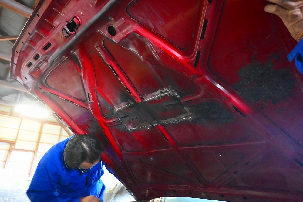 オーナー様、溶接で鉄板を貼り付けたボンネットです。