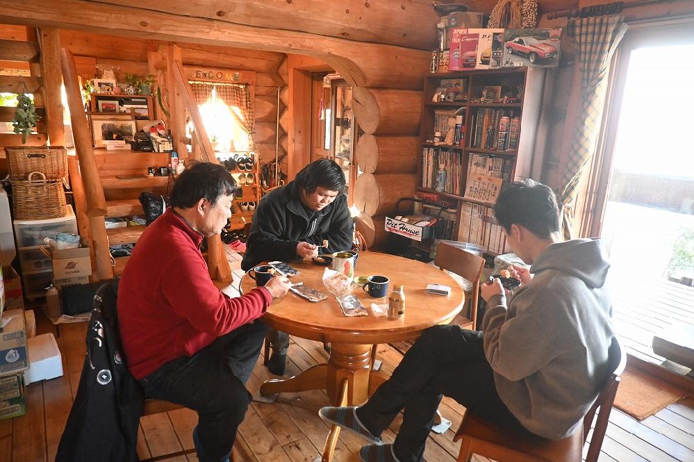 今日は外が寒く、暖炉の火を見ながらのんびりと休憩を行いました。
