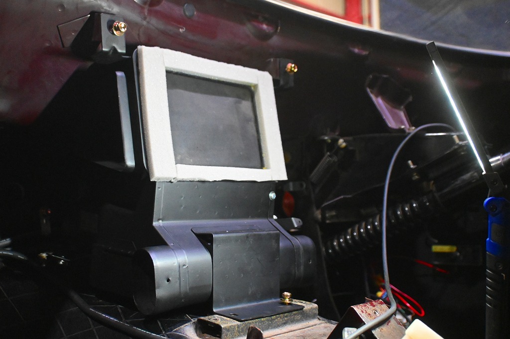 ピットハウス、オリジナルパーツのボンネットダクトを仮固定しました。