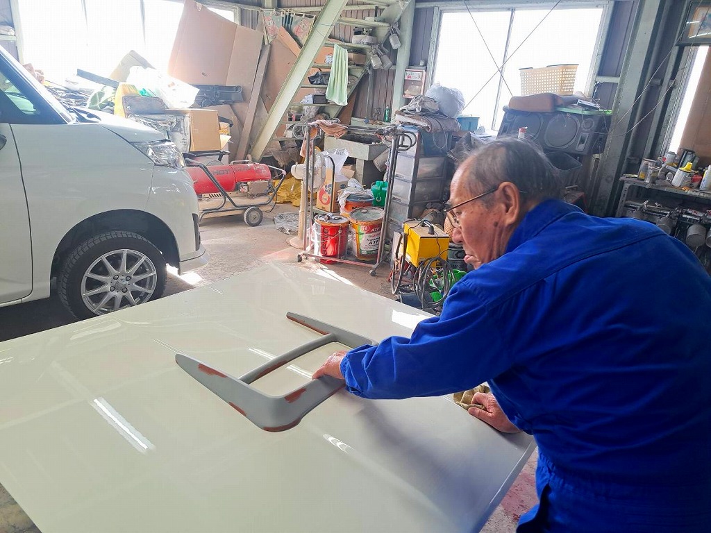 ボンネットを鈑金工場に運んで作業の準備に入りました(*^-^*)